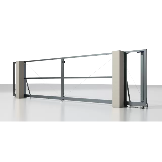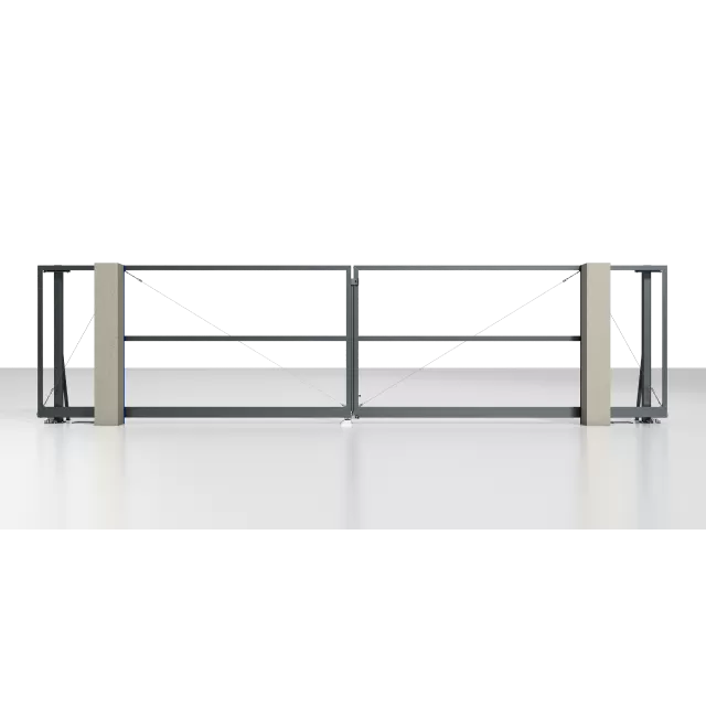 Рама: 96 мм. Комбинированное заполнение: сэндвич-панель L-гофр и разреженный профиль 37 мм. цвета «Серый антрацит» (RAL 7016). Автоматика ALUTECH Roteo