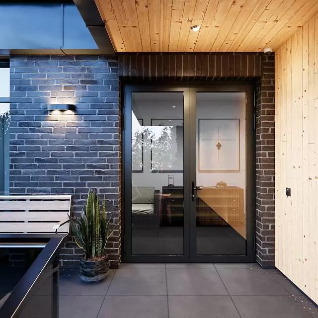 Фурнитура: роликовые петли, многозапорный замок, комплект шпингалетов.