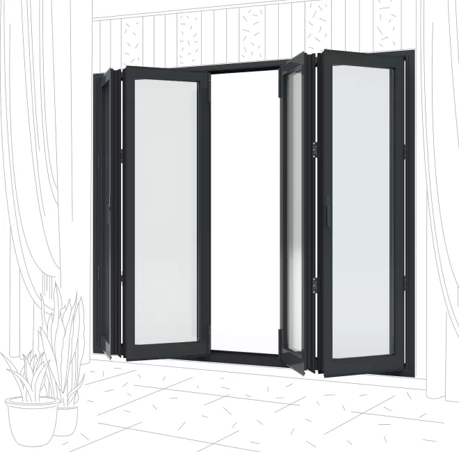 Складные трехстворчатые панорамные двери ALT BF73 2400×2700 мм