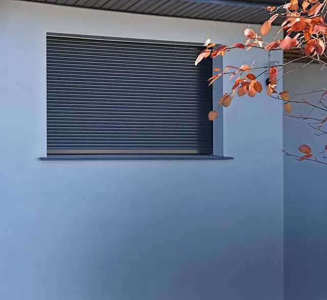 Короб роллеты устанавливается внутри проема, за счет чего на фасаде отсутствуют выступающие элементы.