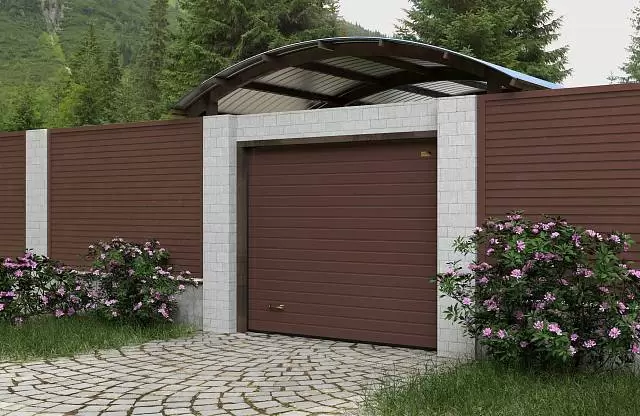 для отдельного входа-выхода. Дверь гармонично сочетается с гаражными воротами, придавая фасаду дома завершенный вид