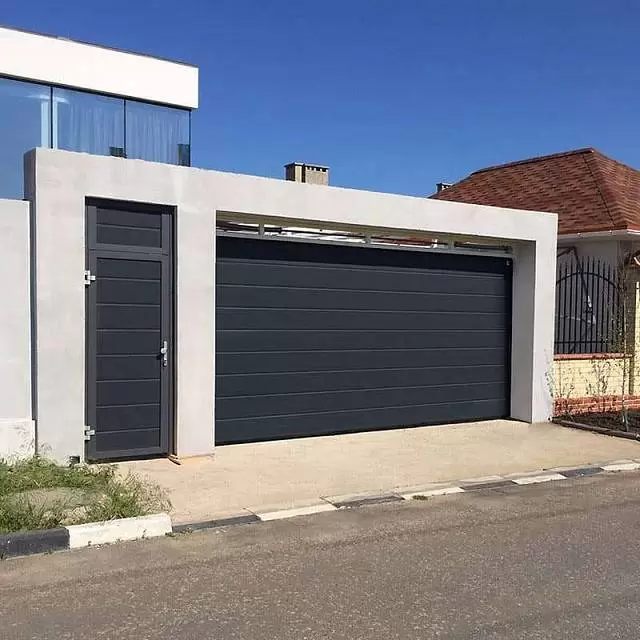 для отдельного входа-выхода. Дверь гармонично сочетается с гаражными воротами, придавая фасаду дома завершенный вид
