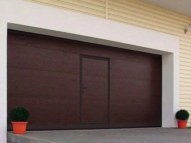 для отдельного входа-выхода. Дверь гармонично сочетается с гаражными воротами, придавая фасаду дома завершенный вид