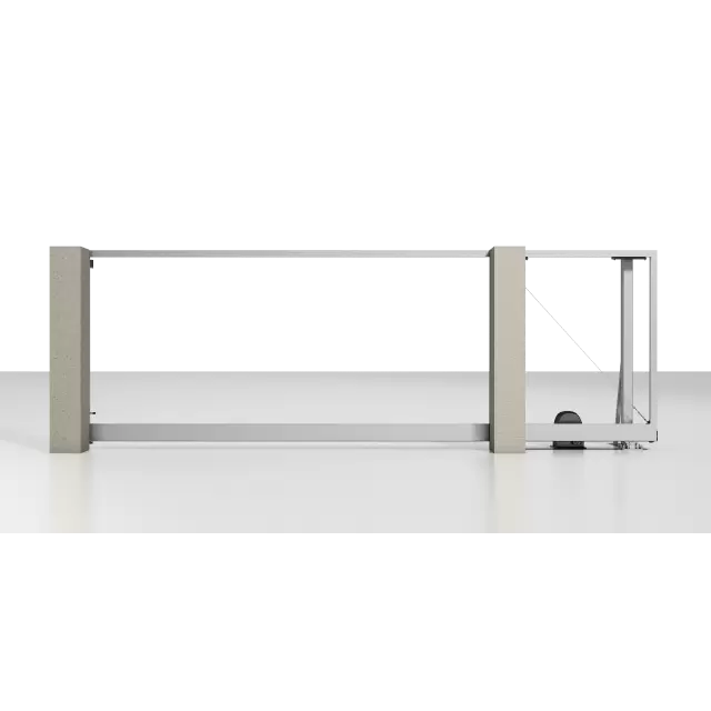 Рама: 96 мм. Комбинированное заполнение: сэндвич-панель L-гофр и разреженный профиль 37 мм. цвета «Серый антрацит» (RAL 7016). Автоматика ALUTECH Roteo