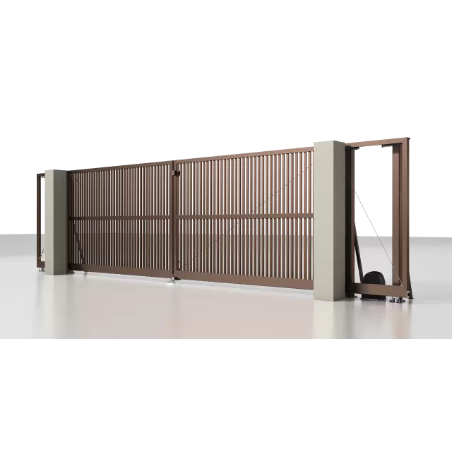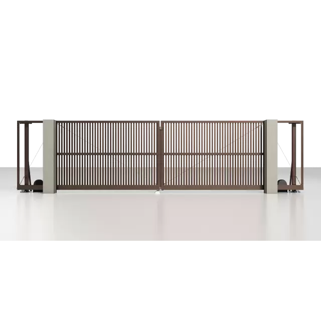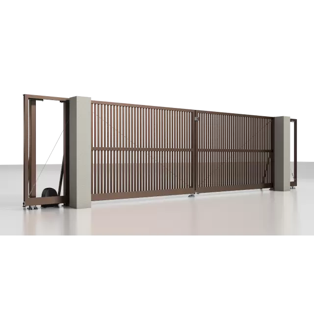 Рама: 96 мм. Комбинированное заполнение: сэндвич-панель L-гофр и разреженный профиль 37 мм. цвета «Серый антрацит» (RAL 7016). Автоматика ALUTECH Roteo