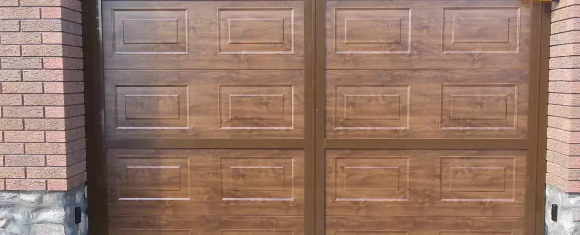 Заполнение из сэндвич-панелей с рисунками микроволна, филенка, S, L, M‑гофр толщиной 45 мм и двухслойным полимерным покрытием с возможностью покраски в любой цвет по карте RAL.
